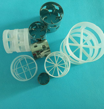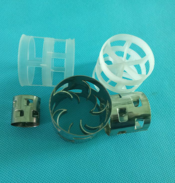鮑爾環填料 產品概述: 鮑爾環填料是一種新型填料,是針對拉西環的一些主要缺點加以改進而出現的,雖然環外徑也是等于高度,但環壁上開出兩排帶有內伸舌片的窗,每層窗孔有5個舌片。這種結構改善了氣液分布,并且讓環的內表面得到了充分利用。與拉西環相比,處理量可大50%以上,而壓降低一半。